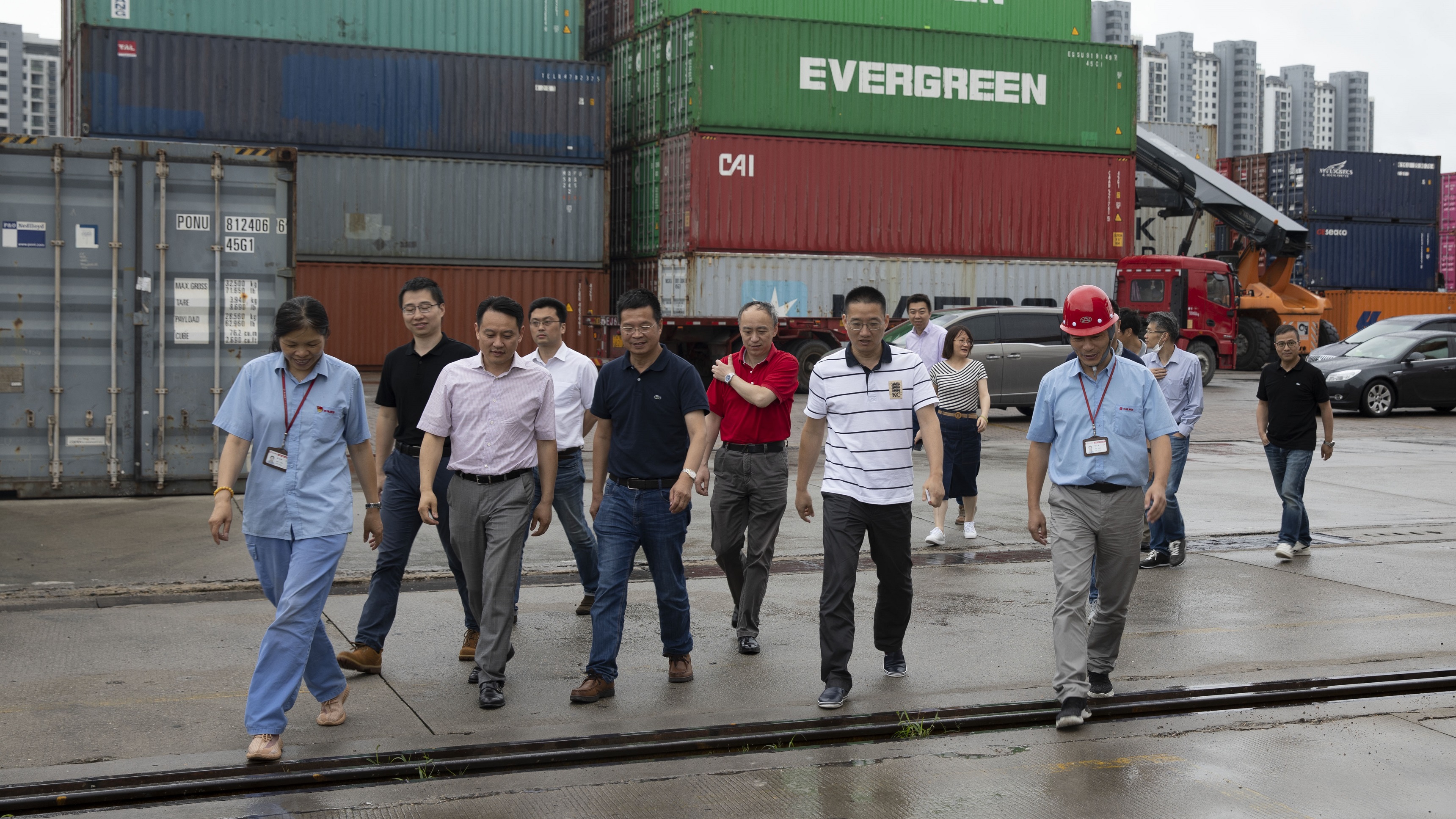 6月18日,上海浦东国际集装箱码头有限公司总经理程引、上港集团振东集装箱码头分公司总经理薄海虎、上海沪东集装箱码头有限公司党委书记黄振荣、上海明东集装箱码头有限公司党委书记程海明、上港集团生产业务部市场经理盛一鸣一行11人,专程到我司苏州办调研“陆改水”项目及内河集装箱业务发展情况,范金生董事长与相关业务部门人员陪同。