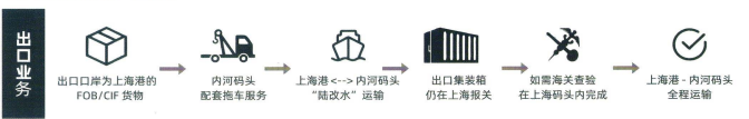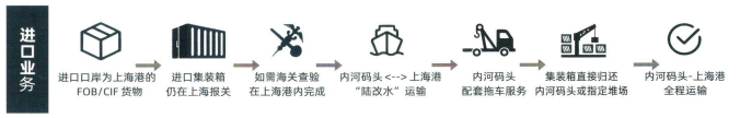 作为国内首家河海直达船舶建造与运营企业,公司专注于提供母港-内河港口河海直达集装箱水路运输服务。针对进出口口岸为上海的FOB/CIF货物,不改变贸易条款和订舱模式,进出口集装箱仍在上海报关。如集装箱需要海关查验,将在上海港内完成。内河码头至上海港为内贸"陆改水”运输,通过内河码头配套拖车服务,取代传统公路集卡直拖方式及传统内河水路需经上海外高桥二次中转方式,提供客户门点-上海港全程运输。